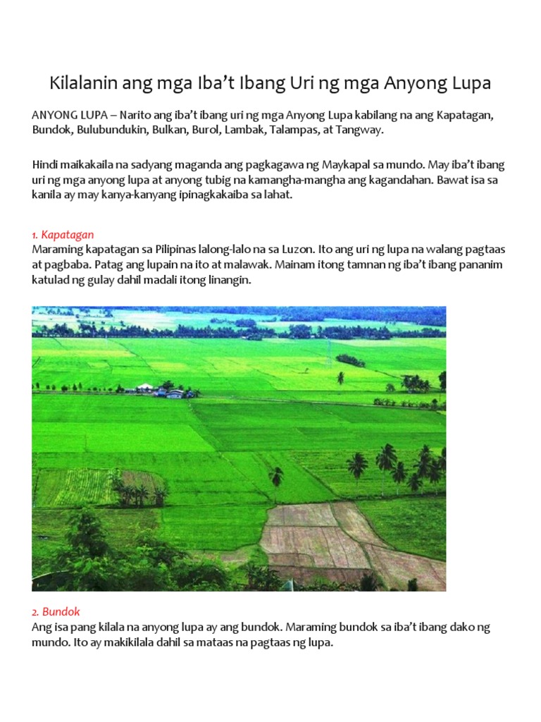 Mga halimbawa ng kapatagan na matatagpuan sa pilipinas. 20181114 Kilalanin ang mga Ibat Ibang Uri ng mga Anyong Lupa. The Cebuano words Anu-ano ba ang mga saling dula sa pilipinas.